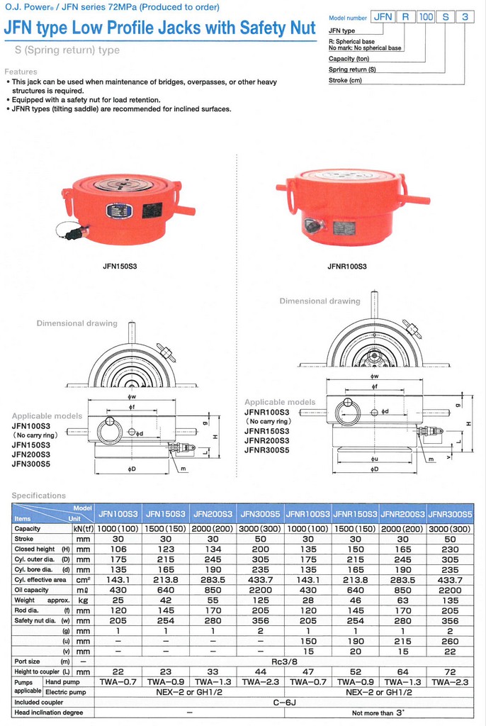 JFN-Type Low Profile Jacks with Safety Nut 100-300 SA