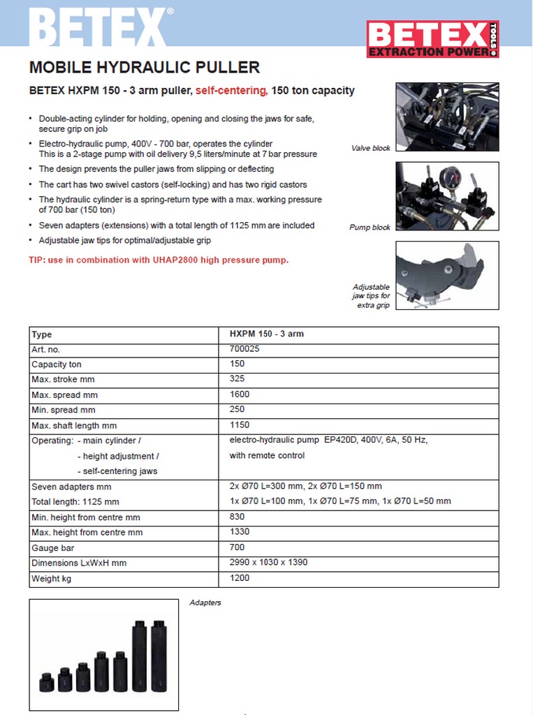 HXPM 150 3ARM Mobile Hydraulic Puller