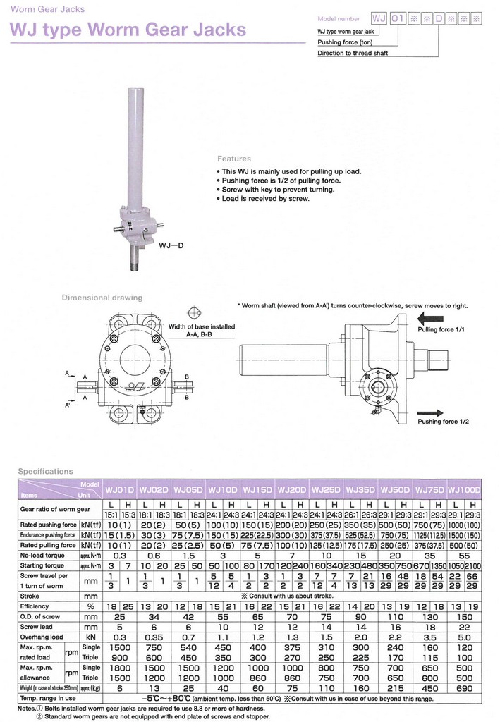 WJ-Type Worm Gear Jacks (D)