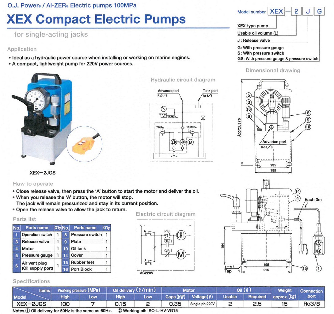 XEX-Type Compact Electric Pumps 100MPa Single Acting